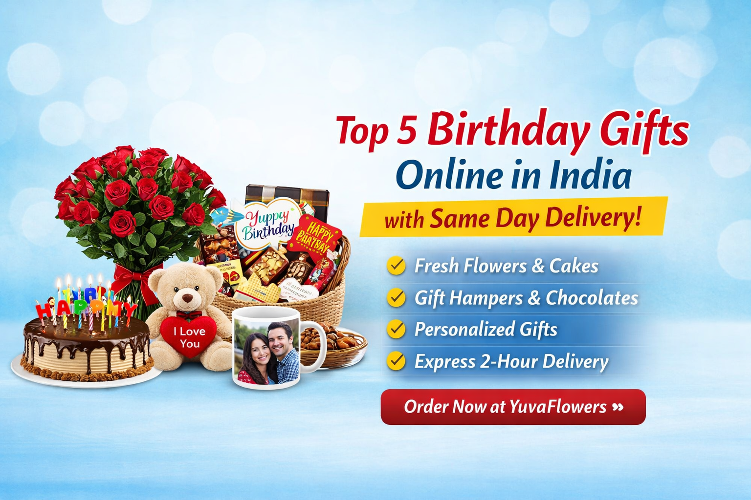 YuvaFlowers offers a seamless experience to send Birthday Gift Delivery Online across India with speed, quality, and reliability. Whether you’re planning a romantic surprise or a thoughtful gesture, these top 5 gift ideas will help you make every birthday unforgettable.