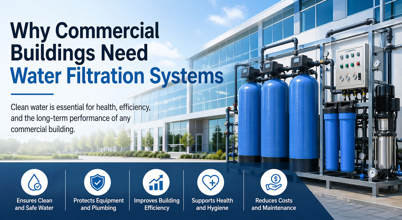 Commercial buildings need water filtration systems to ensure safe, clean, and reliable water for daily operations. From drinking water to industrial processes, every drop of water must be properly treated to avoid health risks and equipment damage.